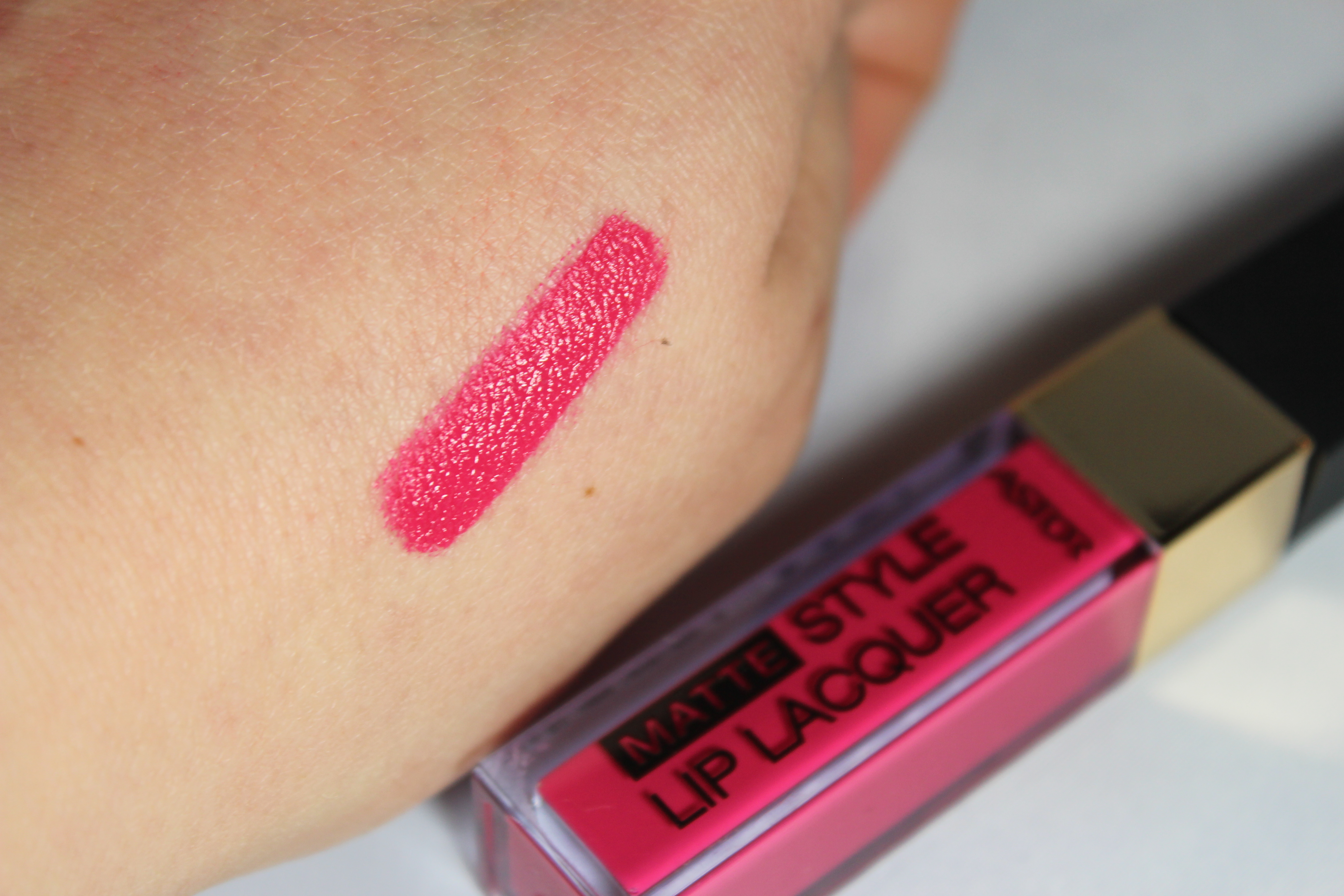 Ich habe mich für die Farbe „Just so stylish“ entschieden und bin sehr überrascht vom Ergebnis. Das matte Finish ist wirklich sehr langanhaltend, selbst essen und trinken hat er fast unbeschadet überstanden (zumindest weitgehend) und die Deckkraft ist wirklich mehr als zufriedenstellend. Der Lippenlack deckt in der ersten Schicht und hat eine leuchtende Fuchsiafarbe. Er trocknet auf den Lippen, allerdings ohne sie auszutrocknen, was mir schon so häufig bei anderen matten Lippenstiften aus der Drogerie passiert ist.