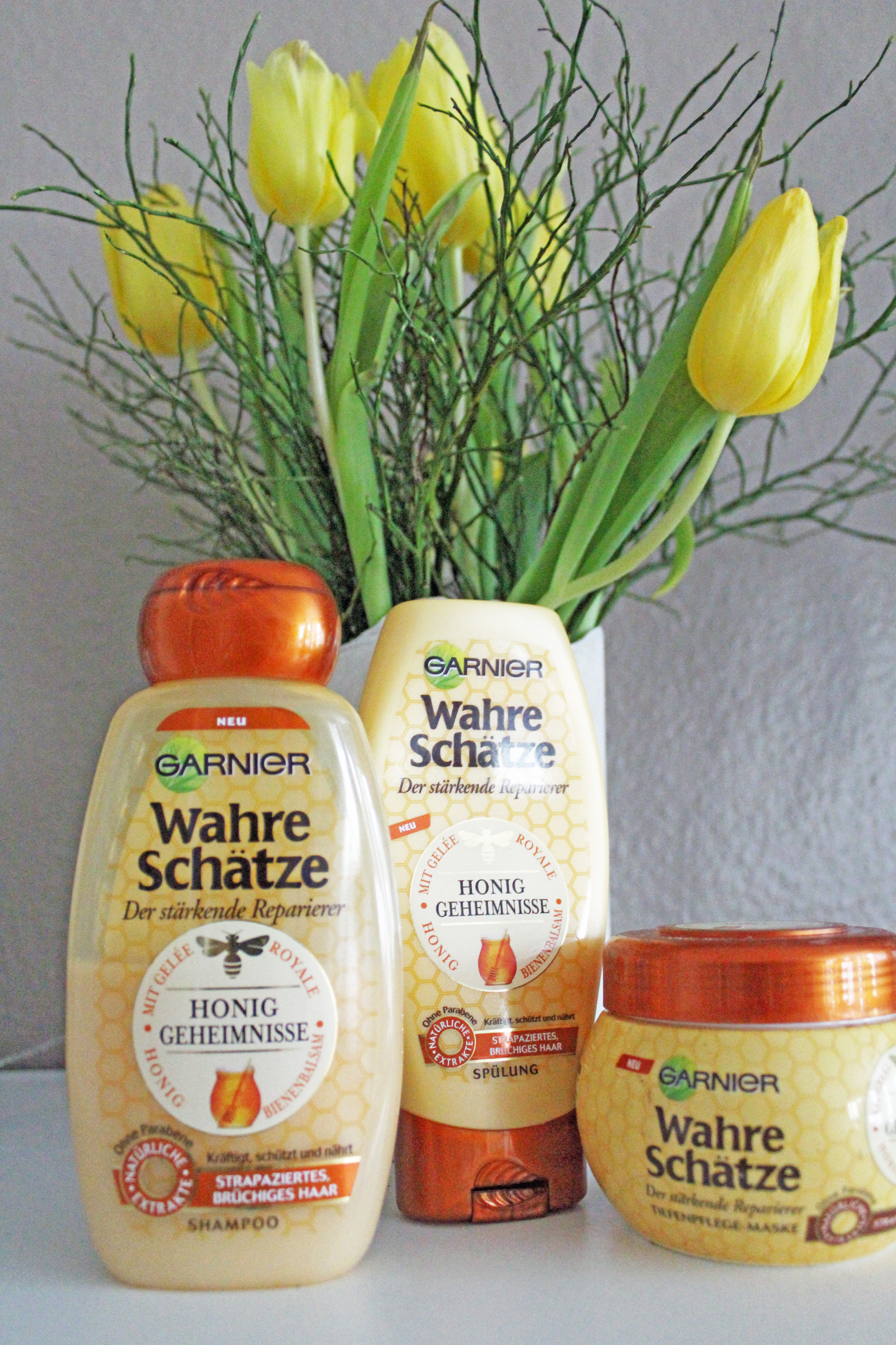 Es ist nun schon zwei Monate her, seit ich die Reihe „Wahre Schätze – der stärkende Reparierer“ von Garnier im Rahmen eines Gewinnspiels zum Testen zur Verfügung gestellt bekommen habe und ich hatte somit lange Zeit, sie zu testen. Das Shampoo, die Spülung und die Kur aus der Serie „Honig Geheimnisse“, die strapaziertes und brüchiges Haar reparieren sollen, zogen in mein Badezimmer ein und wurden von mir in den letzten Wochen unter die Lupe genommen.